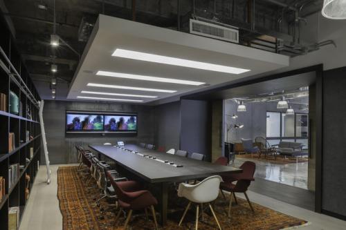 工業風格的辦公室給人都是比較色彩單一的,主要采用黑白灰三色調為主色調進行裝修設計,來達到整體的視覺效果。通過黑白灰的主色調在配以少量輔色調進行點綴裝修,可以使得整個空間給人更加統一,視覺效果也比較好。